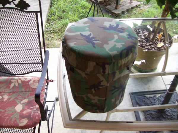 For sale Camo dove hunting bucket seat includes belt loop pouch insulated bucket camo material for blind excellent condition $12.00