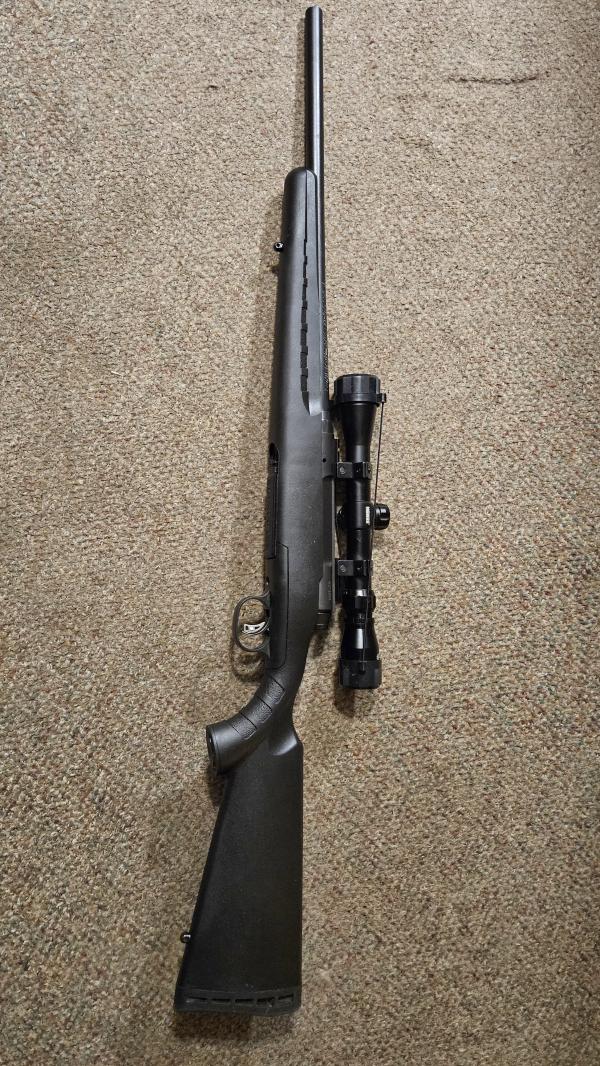 Savage Axis in 350 Legend caliber. It comes with a 18.5" barrel with a new Konus 3-9x32