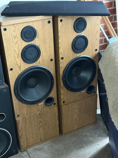 ALL speakers work like they should,I upgraded to Bose 601"s & HUGE Klipsch speakers in garage. Would trade for firearms. You don"t find these much anymore unfortunately! TEXT:(270)227-0453,thank you.ALL have covers(grills).