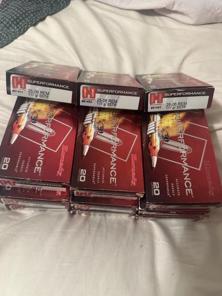 12 boxes of hornady 25-06 117 gr sst $38 a box or take all for $420