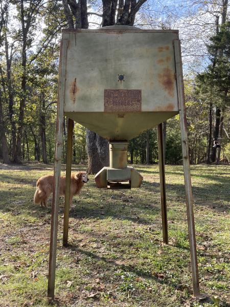 All Seasons Seer Feeder not sure on the capacity but it’s about 10-12 feet tall. Very well made all metal . Call or text 270-994-0693