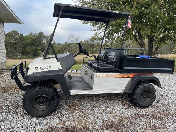 Up for sale is a Bobcat 2100 utility cart manufactured by Club Car. This has a dependable Kawasaki gas engine with a new carb. The motor cranks and runs good, but does smoke. It has a dump bed, windshield, front brush guard, receiver hitch on the front & back, and differential lock. Asking $3,500 please call or text me at...27o,366,6995,,,if you have any questions.
