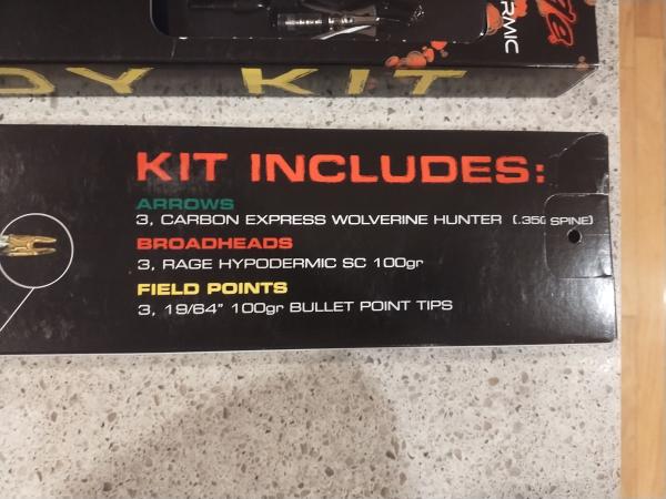 9 Rage Hypodermic broad heads 100gr and 3 bullet point tips 100 gr.
