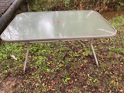 very nice glass top patio table with 6 awesome chairs-in great condition