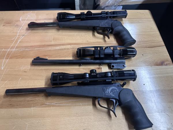 Selling a pair of complete Thompson Center complete pistols that include an extra barrel. 1 has a 223 barrel, the other is a “super 14”. The extra barrel is a 44 Mag. All barrels have a Burris scope installed. Hard shell case is included.