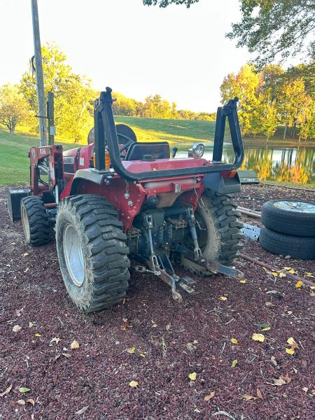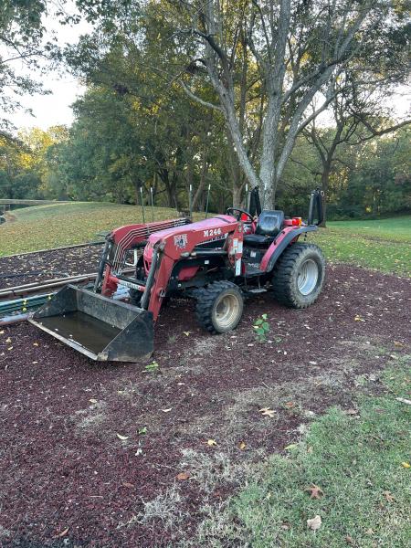 Nice Mahindra 2810 4x4 tractor with front end loader, 28hp 3-cylinder diesel & 12-speed shuttle shift. Good working tractor...