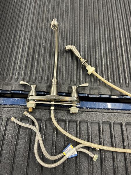 Used Moen kitchen faucet with sprayer and supply lines. Nothing wrong with it, just changed it out when updating to different type and color.