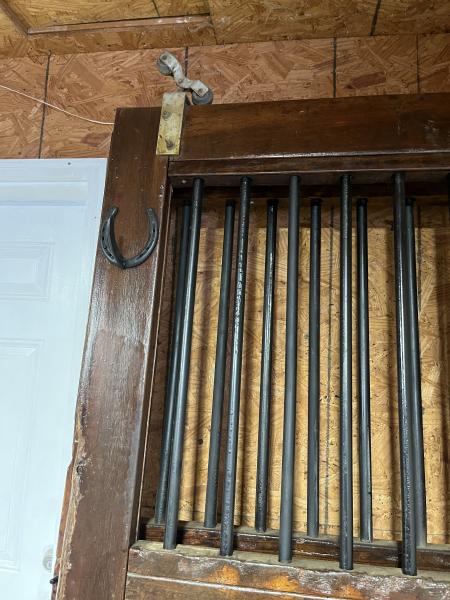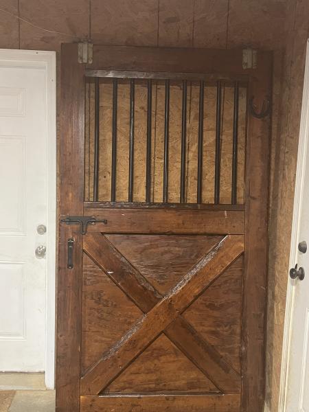 5 heavy duty sliding stall doors. All hardware and overhead rail included. Doors stained and clear coated. If interested text 270-627-0251