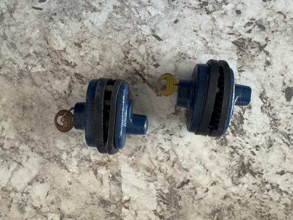 Master Lock brand trigger locks. Steel with rubber inserts to protect the gun finish. Keyed alike. $5