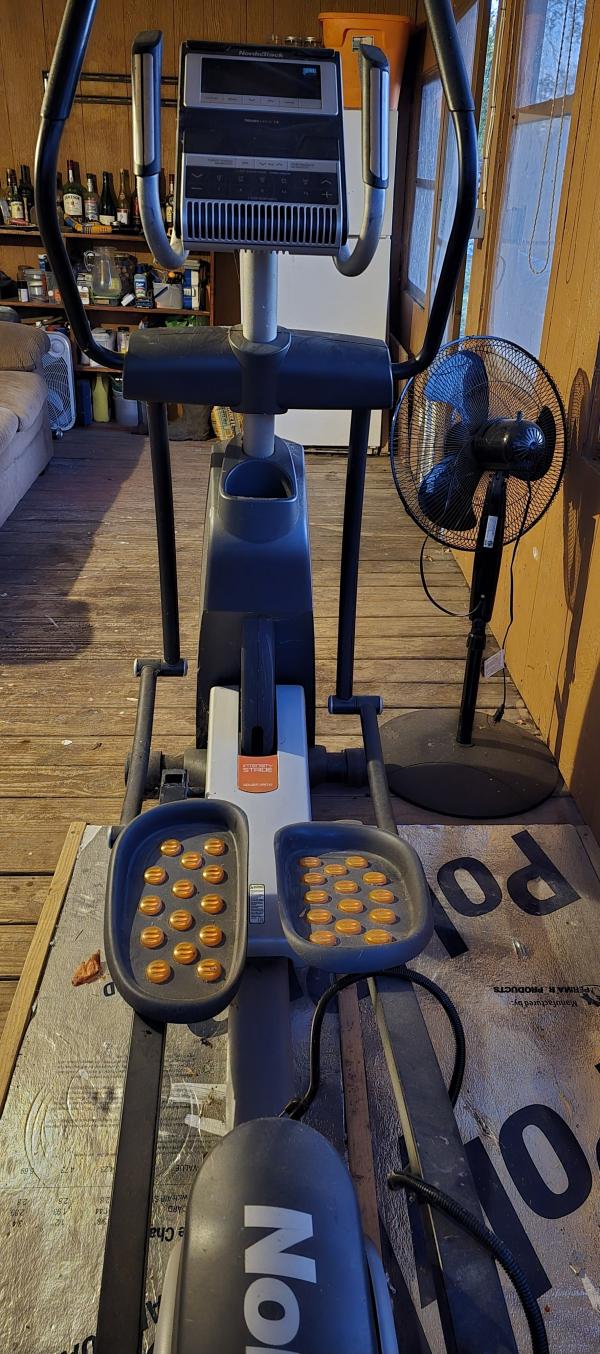 NordicTrack AudioStrider 990 Pro Elliptical. Spacesaver - where the rear wheel will fold up. Works good. Very heavy duty. Has adjustable stride length. Incline and resistance abilities. Has both stationary and mobile handlebars. Front-mounted transport wheels to make moving easier. Asking $100 or Best Offer. Will provide transporting it to new location within Murray or Calloway County.