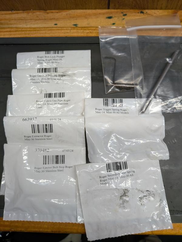 For sale are some Ruger Mini Parts and upgrades. Everything works on Mini 30s and I think newer Mini 14s except magazines, ammo, and linear comp that are Mini 30 only.