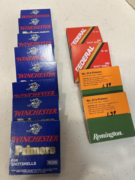 First I have 1200 shotgun primers .. Winchester, Federal , and Remington. As seen in the picture. Price is $75.