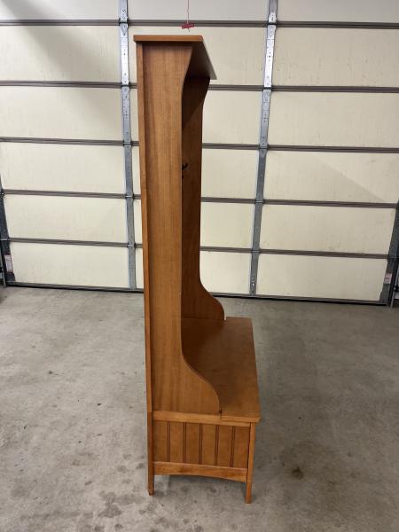 Storage compartment is 10 inches deep. Will hold several pairs of shoes/boots, etc.