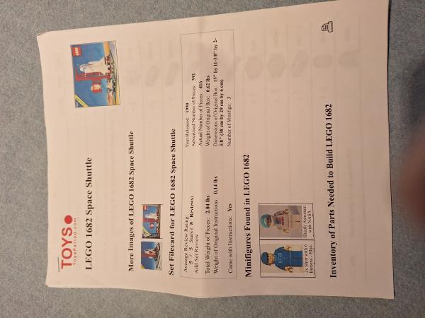 LEGO 1682 Space Shuttle (Retired) Made in 1990. 416 pieces. Complete set. Instruction book and parts list. Asking $65 or best offer. Cash only