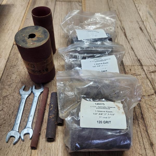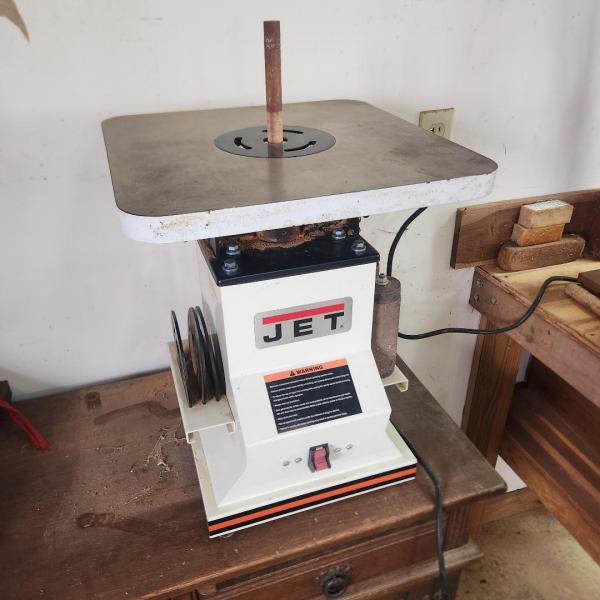 Jet spindle sander and accessories. Used for a couple of hours on one project. Perfect for sanding curves. Downsizing shop.