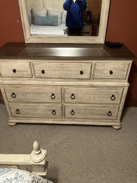 This Queen bedroom suite includes a queensize temper-pedic mattress with adjustable base, dresser/mirror combo, side table and chest of drawers. Price new was over $11,000.00 bought brand new in 2023- selling due to parent passing away.