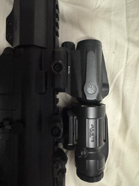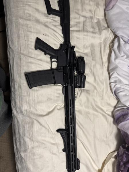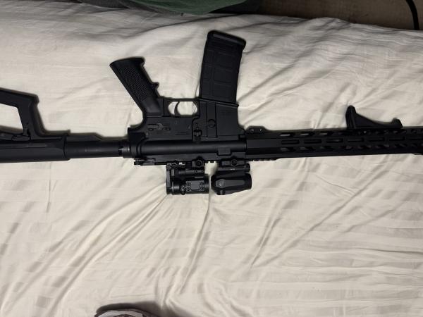 Anderson Ar-15 with magpul stock and foregrip. Sig Sauer Romeo and Juliet Red dot and 5x magnifier. Magpul pro flip back up sights. Text me 270-226-3633 price is obo