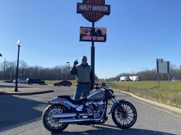 2024 Harley Breakout Edition, pro-street look with wide 240 back tire. 117ci Milwaukee 8 117 engine. Fuel injected. Billiard gray in color, detailed after every ride, immaculate condition. Digital dashboard, traction control, cruise control, ABS brakes. Bike has 7304 miles currently, serviced regularly. Bike has factory mufflers pictured but currently has Krome Werks brand slip on mufflers for better sound. Also comes with HD brand quick release passenger backrest. Bike was 23,499 new, asking $17,500. Ask for Jeff at 270-816-3700.