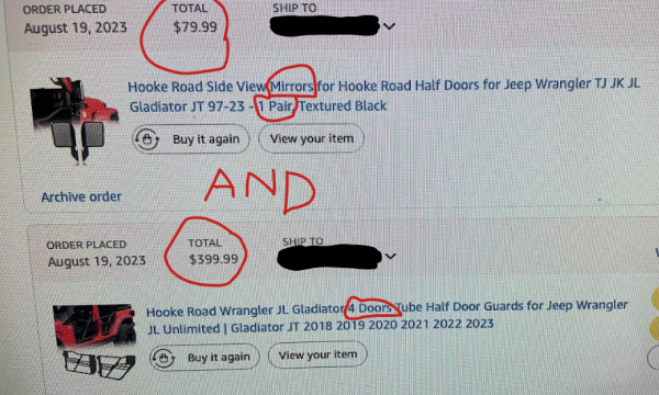 $350.00 Four Jeep Tube Doors with Two Mirrors. Rarely used.