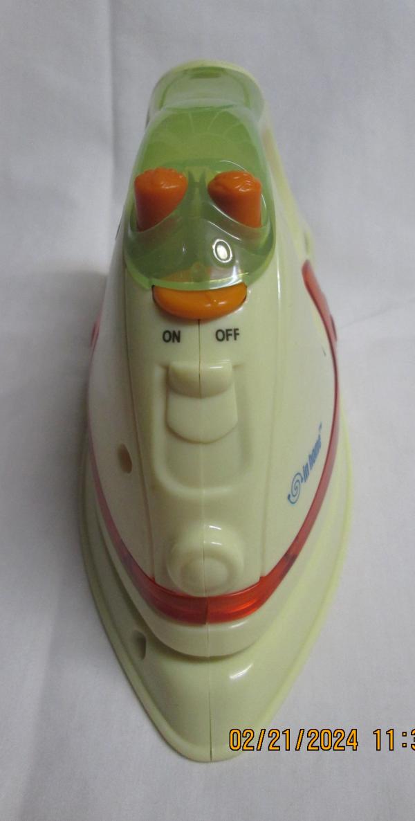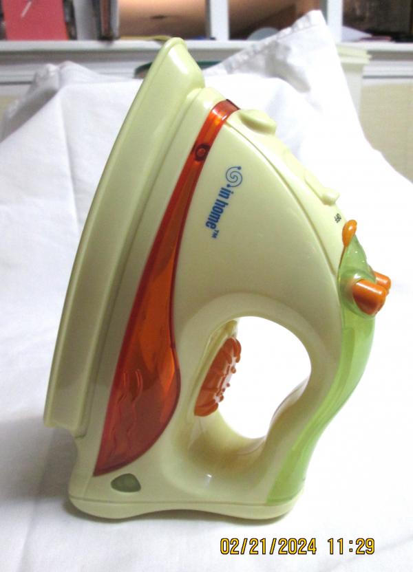 The iron is battery-operated (included) and turns on to make “ssssshh” sounds like a real iron.