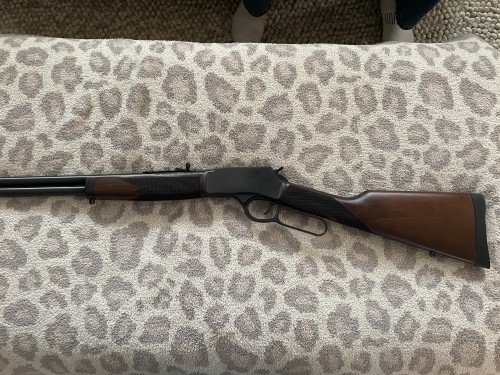 Like new Henry Lever Action (H012GM) chambered in .357 Magnum/.38 Special with a 20 inch barrel. Rifle was bought brand new roughly 2 years ago and has has around 150 rounds through it. Comes with a Henry scope base and ring set. The wood is still in very good condition, free of scratches. The steel has been well maintained with oil and is rust free. Overall, this rifle would be a great addition to anyone's collection.