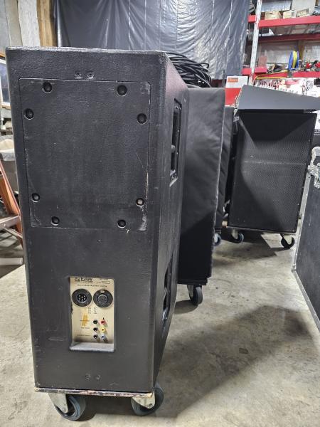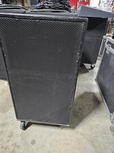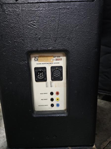 2 eaw kf 600 pa speakers 15/10 and horn tri amp only good condition although some speakers was replaced by a sound company.... wheel dollies not included in sale.