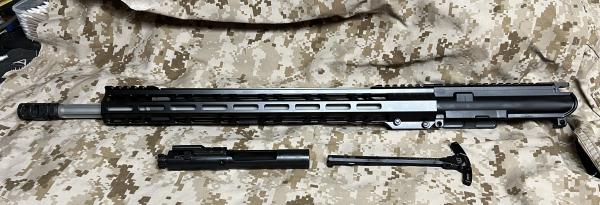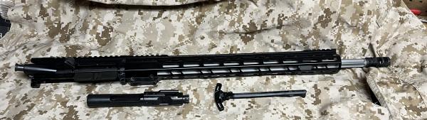 Ballistics Advantage 20" stainless and fluted DMR 1/7 twist 22arc barrel( Rifle +1 lenght gas system, gas block is not adjustable), VG6 comp, 17" hand guard, Breek War hammer charging handle and BKings bolt. Barrel and bolt have 70 rounds on them. Very accurate with Hornady 62gr ELD-VT (3153fps) and 80gr ELD-X (2821fps). Selling to fund a different build.