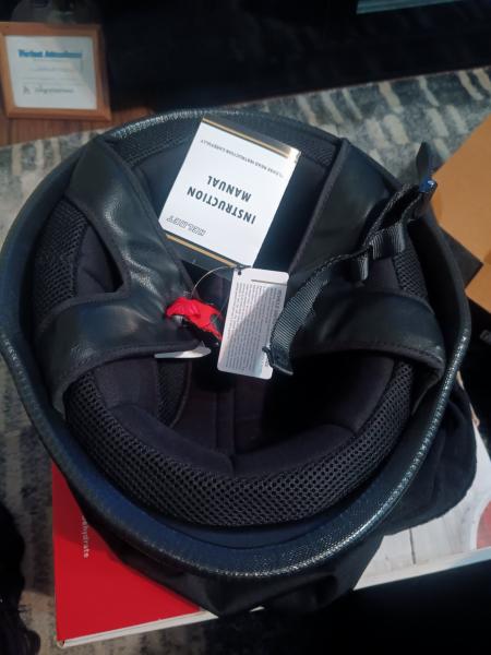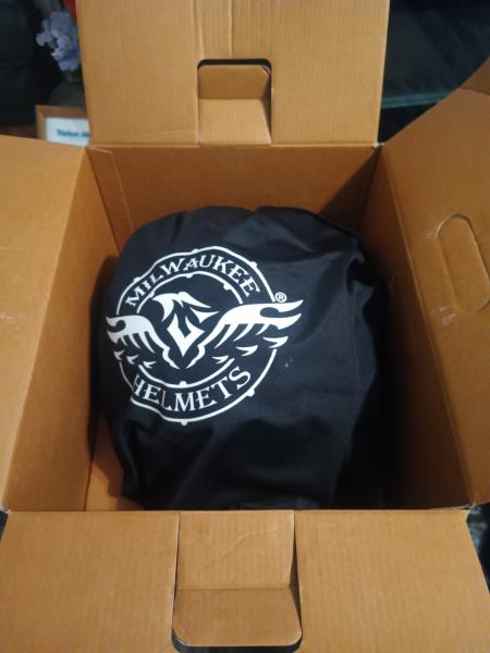 New in the box never used Milwaukee German half helme, shiny/gloss black, D.O.T. approved still have tags on it size large. With storage/carrying bag $60
