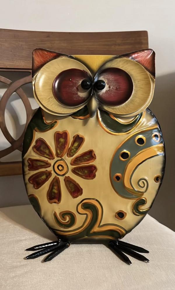 Metal owl decor. Approx. 10 inches tall and 8 inches wide. Pick up in Reidland. Cash only. If listed it’s available.