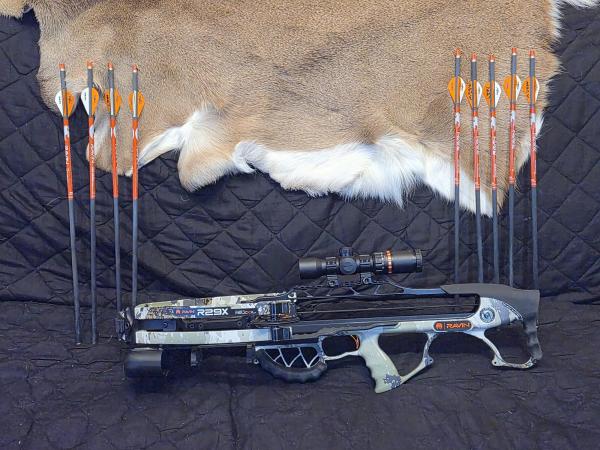 This is a like-new Ravin crossbow 29X. I took it hunting one time. It has been shot enough to get it sighted in. I have 9 arrows with it and a new cable and string for it. The cable and string cost 150.00. I need to downsize and it needs to go to someone who will use it and appreciate it.
