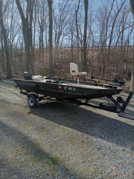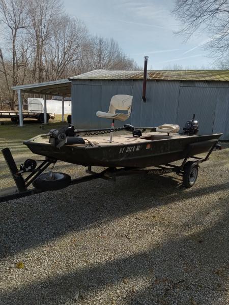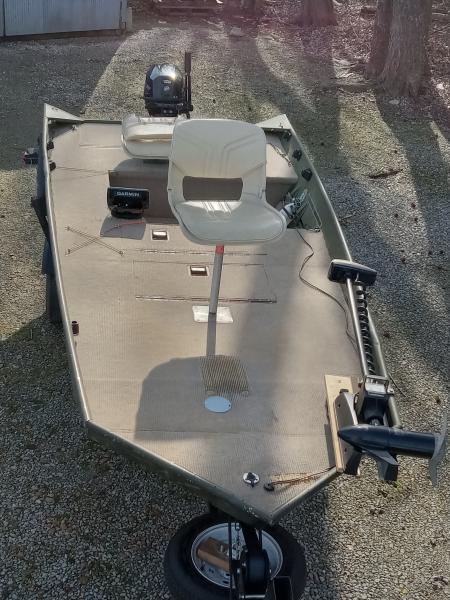 Jon to bass boat conversion. 25 HP rated. No leaks. Solid transom. Auto pilot Minn Kota trolling motor or Motor Guide foot control trolling motor, buyers choice. Nav lights, storage compartments, live well, Garmin sonar, good batteries, year old tires including spare, year old bearings, bilge pump, 2019 Mercury 9.9 4 stroke electric start outboard low hours. Will sell boat without motor $2000.00. Will remove trolling motor, batteries and sonar, in order to sell. Have other boats need garage space. Will negotiate in person. Call 270-331-1422 before 9 pm.