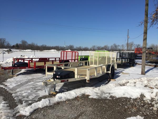 New 6.5’x14’ Two Tone Utility, dove, 3’gate, toolbox, 4” channel, powder coated, pressure treated floor, LED lights, 3500lb axle, new radial tires on 15” rims. Special colors while supplies last!