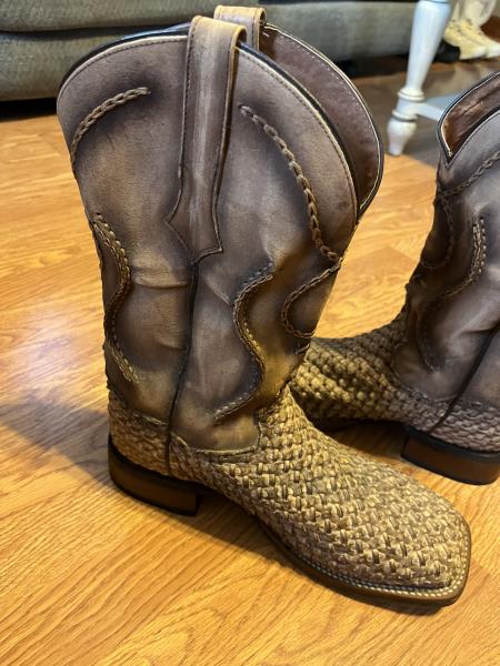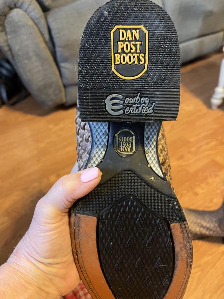 I have a pair of Dan post new boots only worn twice. He paid 319 and selling for 180 if interested call 270-883-0299 and ask for Linda. these are size 9 to 10.