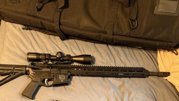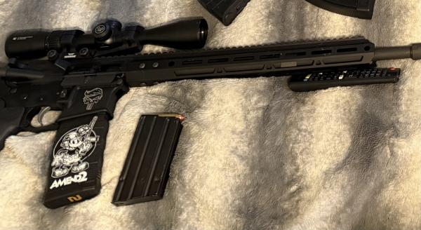 450 bushmaster upper on Anderson lower, mag pul furniture warne scope rings crossfire vortex 3 x 9 x 40 scope comes with three boxes of ammo two mags have more pictures text 270-331-4596 for more info