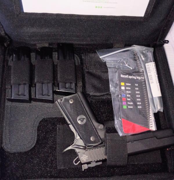 New RIA TCM M1911 A2 Full Size High Capacity 9mm/.22 TCM combo. Comes with both a 9mm and a .22 TCM barrel as well as the recoil springs for each caliber. (3) 17rd double stack magazines. Soft side case and all the stuff from the factory. Also comes with a 100 round box of .22 TCM factory ammo. Can sell or trade. Call or text 6186975033.