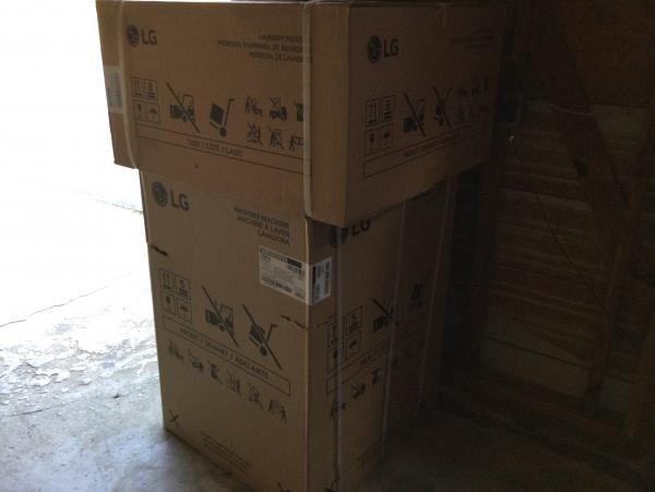 STILL IN BOX 2.4-cu ft Ventless All-In-One Washer Dryer Combo (Graphite Steel). Includes Universal Laundry Pedestal with Storage Drawer, Power Cord and Washing Machine Connector. Purchased for remodel and changed mind on redoing laundry.