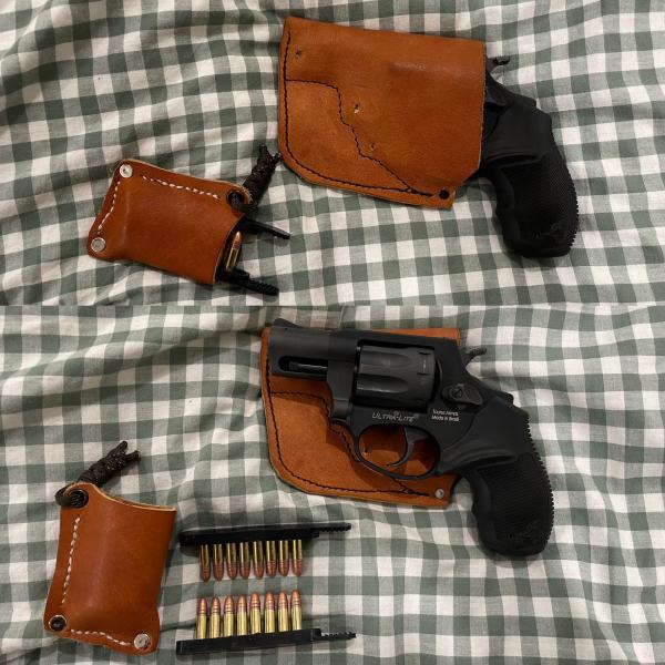 For sale is a pre owned but in like new condition, Taurus 942 Ultra Light 22LR revolver. I got this recently and have only shot a couple rounds thru it. Nothing wrong with the revolver whatsoever, just don’t really need it. It is in like new condition. Includes original box, papers, etc. Also includes a pocket holster I made, 2 speed strips w/ ammo, and a pouch for them to go in.
