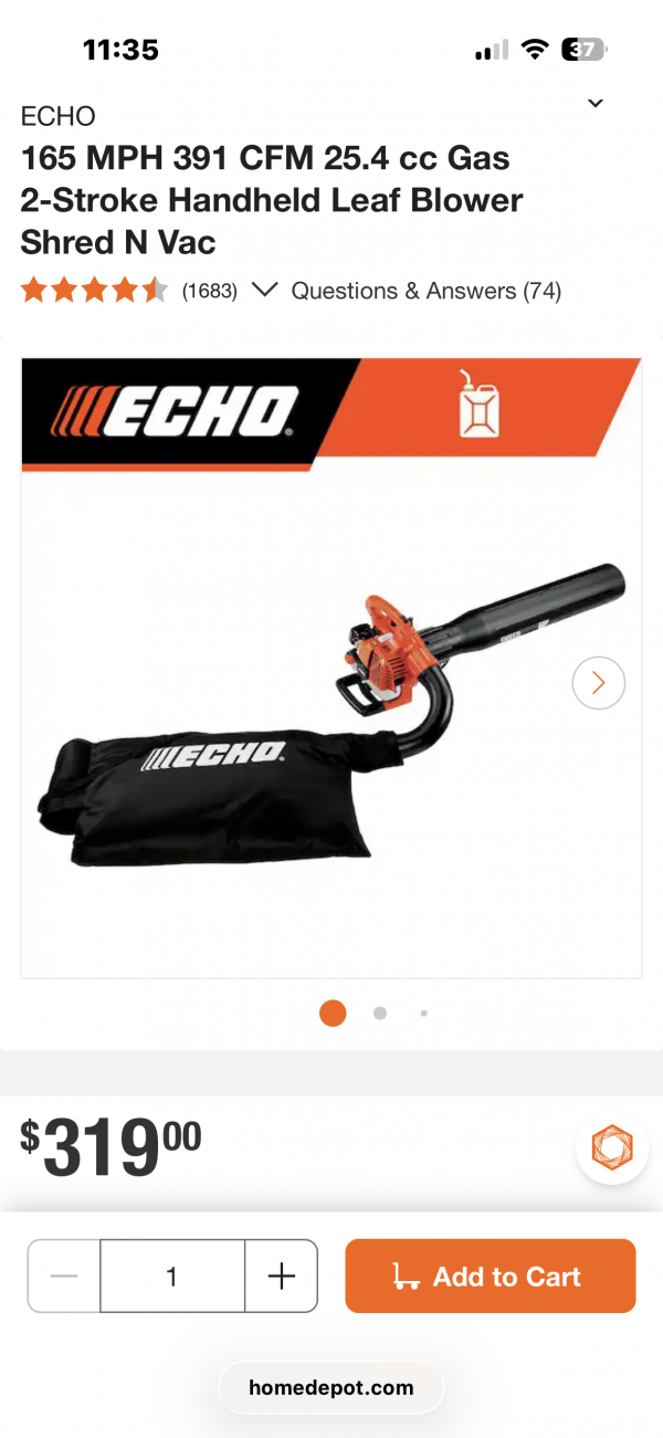 Brand new never had fuel in it. Echo ES-250 leaf blower shred n vac. $320 new at home depot asking $250 obo.