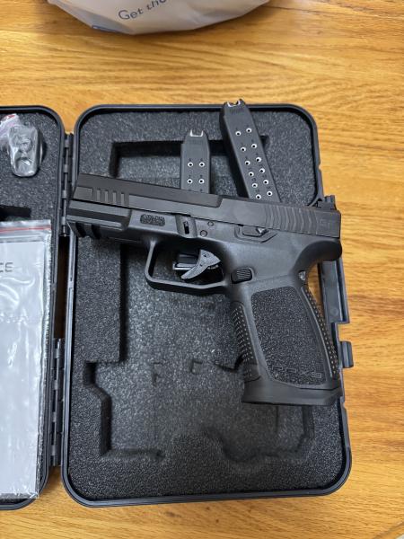 Gforce Arms 4-inch 9 MM 15 + 1. It has Glock 19 GEN 3 & 4 part compatibility & front and rear fiber optic sights. It has been shot about 75 rounds. Like new in the box. $325.00.