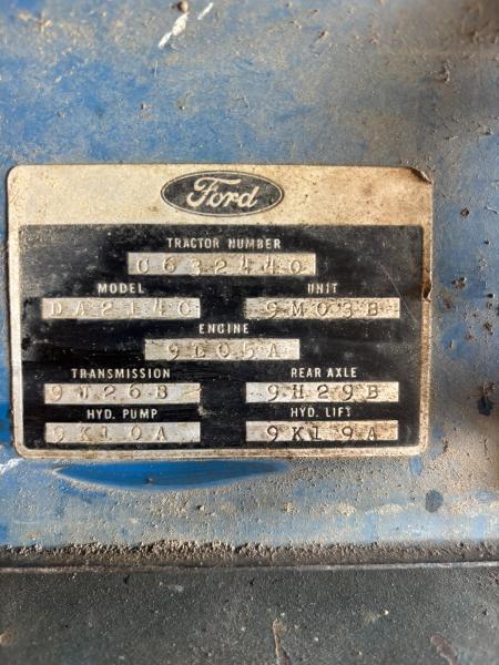 Tractor: Ford 4600 tractor model DA214C, front bumper weights, good tires, runs