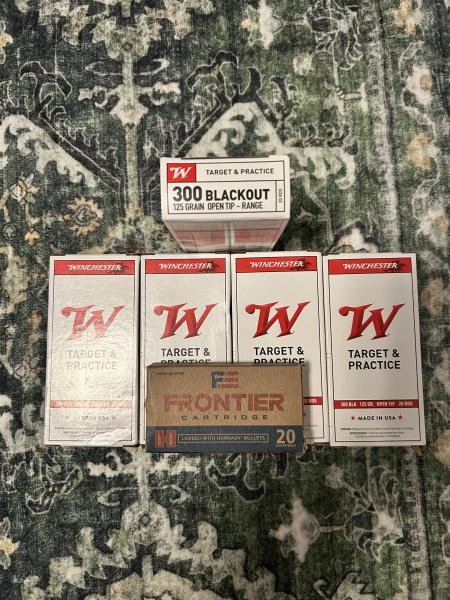 5 boxes of Winchester white box, 1 box hornady frontier. 15$ box (90 total) will no seperate.