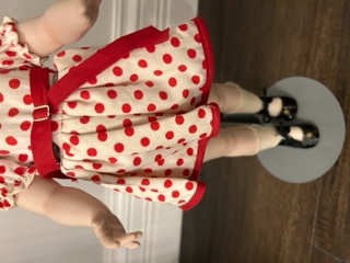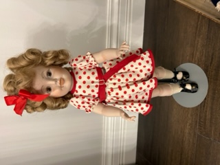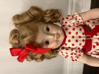| Shirley Temple doll in famous red dot dress In great condition With Stand |