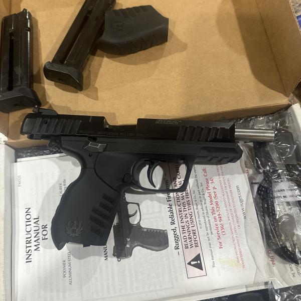 | Up for sale is a gently used Ruger SR 22. This is the extended barrel version ( 4.5 inch). Comes with everything as bought new, including two mags, both grips , box and paperwork etc. and also included is a ruger branded holster. Call or text 270-339-0025 and thanks for looking. |