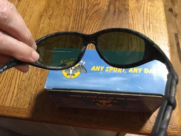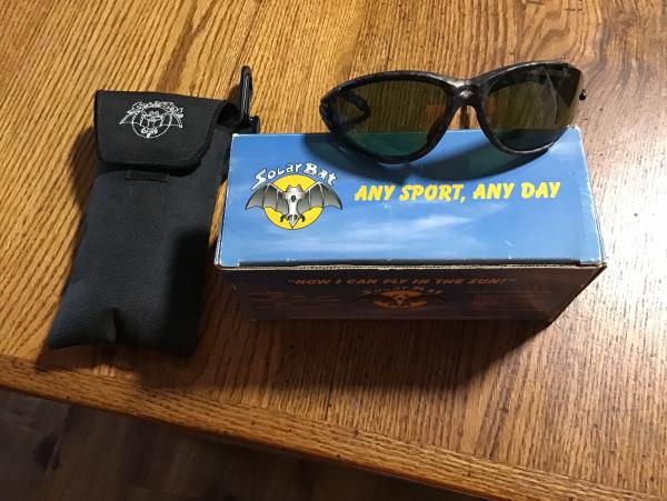 | Solar Bat 🦇 polarized sun glasses. New, Never worn. A little on the smaller side but that’s good because they won’t blow off. I paid $130. Comes with bag and belt clip. Willing to take $80 obo. Can meet at exit 3. Rural King. These are high quality glasses.. call or text 618-638-0424 |