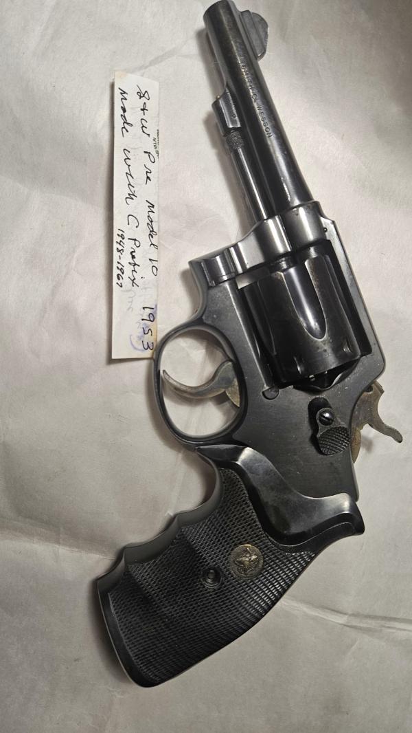 Smith & Wesson Pre Model 10, 5 Screw, c prefix, 38 Special revolver produced around 1953. The condition of the S&W is very good with case on trigger and hammer. The revolver has a 4" barrel and rubber grips. It locks up great and is very tight. Price: $595 Iver Johnson Model 55-SA Cadet 8 shot single/double action revolver. The Cadet has a 2.5 inch barrel and very good grips. This model is a side loader. The condition of this Cadet is very good. Price: $200 Text, Phone (270) 331-2241 Be legal in KY Thanks for looking |