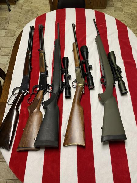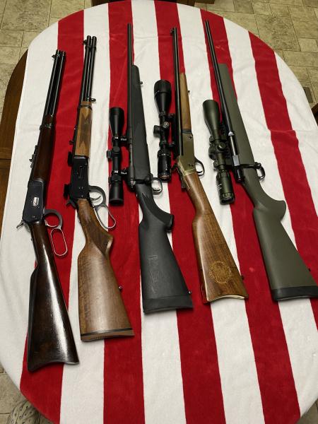 | I have a few rifles for sale. From left to right. First one is a Rossi colt .45 $425. (SOLD) The second one is a Mossberg model 464 , 30/30 $500(sold). The third one is a Savage model 11 youth .223 with a 3x9 Nikon scope on it $475. The fourth one is a Henry NRA 45/70 with a Vortex 6x18x44 crossfire 2 scope $650. (Sold)The fifth one is a Howa 1500 .243 with a Nikko Stirling 3x10x42 scope on it $500. (Sold)Prices are Firm. No trades. Please call or text if interested. 270-227-3126 |
