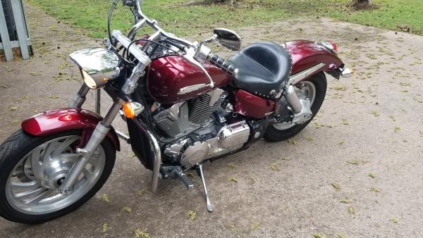 | 2006 Honda VTX1300C alloy wheels, good Michelin tires. V&H pipes, Viking bags, Memphis Shades windshield, aftermarket crash bars with footrests, 4x,xxx miles. Have original pipes,crash bar,and seat. Needs battery. If interested text 270-933-2654 on weekdays please. |