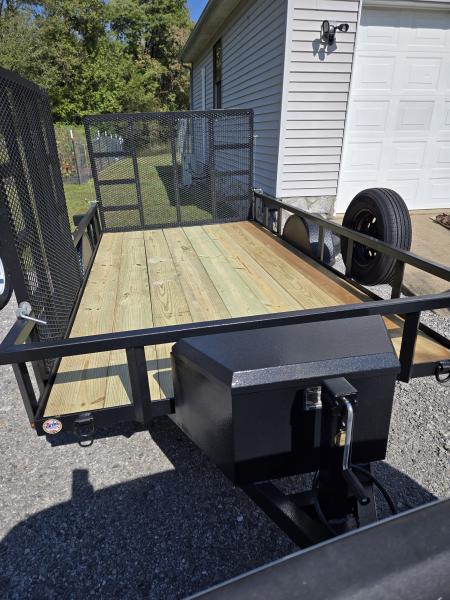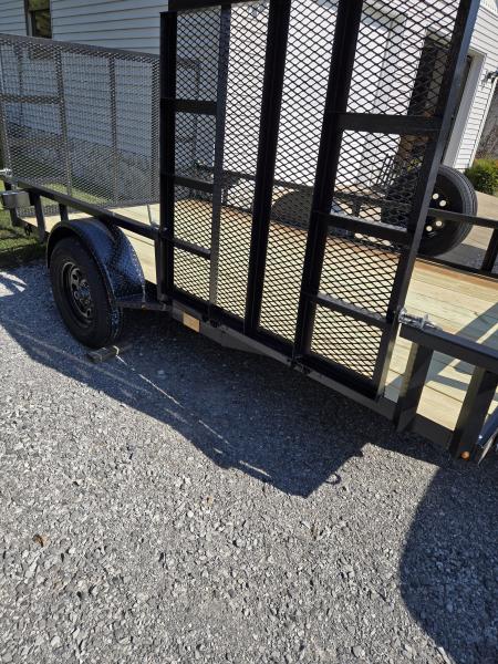 | 76"x12' Lift assist rear gate 50" side gate Ramp style gates Wrap around tongue 2" square tubing top rail Adjustable coupler Heavy duty drop leg jack Tongue toolbox Spare tire mount and spare tire 15" wheels and tires Steel diamond plate fenders Steel wrapped led lights with reverse lights 7 pin plug Welded on D rings 2 each side 2 on front Treated wood floor Single axle Brand new (270)366-6113 |