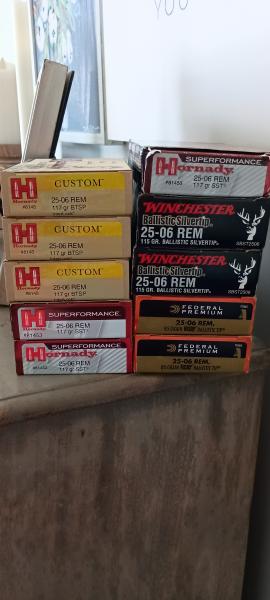 | Like new Weatherby Vanguard 25-06. Olive green synthetic stock, Nikon Prostaff 5 scope, sling, hard case and 9 boxes of ammo and a partial box. All stored correctly. Ammo boxes were $40 and higher each. I'll pay the transfer fee. |