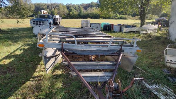 | Stripped Floor and ready to build to your own specs. Dock or Hunting Blind? 24 feet long. 100HP Johnson Motor if needed? Comes with two new tires on trailer. Rest of pontoon on ground if desired. Do not have time to fool with it. Priced at $1500 for entire setup or will part out if need be? Located at Murray, KY 270.293.3232 Will consider trades for other items. |